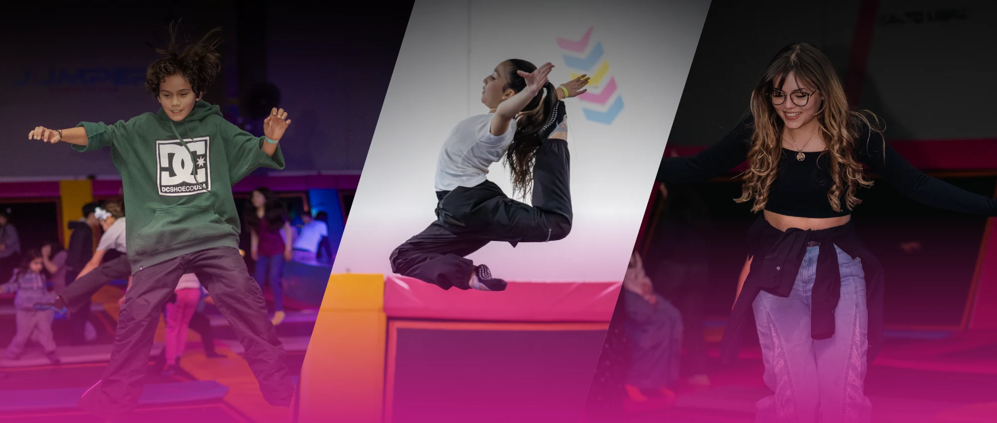Para entrar a la zona mini jumper que es exclusiva para los más pequeños, deben medir como mínimo 80 cm hasta 1 metro. Y para los trampolines debe medir como mínimo 1 metro y siempre con la compañía de un adulto